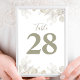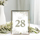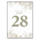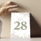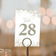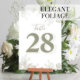 This design features a wedding table number with calligraphy script, an elegant reception table decor, with simple typography and botanical sage green greenery and foliage, a chic floral, modern minimalist, wedding decor, with stylish eucalyptus leaves