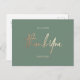 Thank You Custom Sage Green organic Weddings Card with no photos. Wedding Thank You Cards, Elegant Modern Calligraphy Script text Postcards in faux bronze metallic foil.