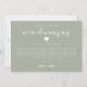 Simple and modern wedding update card featuring sage green design with a script text that says "we're downsizing" with a heart. The card explains how it was a difficult decision but necessary to prioritize the guests' health and well being.