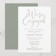 Plain white envelopes are included with paper invitations and will come to fit the invitation size you select. If you don’t need the envelopes, you may choose to not receive them by selecting the dropdown below "Envelopes" and choosing "None." If you’d like to have a design on your envelopes, you can browse all of these available envelopes to find the design that complements your Sage Green Were Engaged Script Engagement Party Invitation.