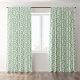 This art deco-themed window curtain design features a white pattern with a custom sage green background that you can change to any color against the white pattern.