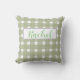 Beautiful Sage Green and White Gingham Pattern Personalized Throw Pillow, is a classic design that contains a checkered look or buffalo plaid, gorgeous colorful design. Buy Today!