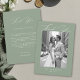Sage green and white wedding thank you card featuring modern calligraphy and a simple, elegant design. This wedding thank you card coordinates seamlessly with sage green wedding invitations and modern wedding stationery suites. Ideal for sending personalized messages to guests after the wedding, expressing gratitude in style. The soft sage green color paired with crisp white typography creates a refined, minimalist look suitable for formal weddings, contemporary weddings, and modern wedding themes. Designed as part of a cohesive wedding stationery collection, this thank you card complements sage green menus, RSVP cards, details cards, and enclosure cards.