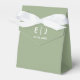 Elegant classic monogrammed napkin bands in sage green and white with your initials and wedding date in traditional minimalist text.