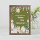 I'm excited to share a customizable green white minimal scandinavian winter christmas party Invitation card. The typography comes in white with different sizes, forms and options. On top of the typography are little snowy mountains. It has typical christmas greenery, tree and white lantern, houses, presents, star garland. The background has a sage green design. It is framed in a rustic wooden frame. You can customize it on both sides with your christmas text, your name and/or monograms. The backside of the invitation has the same design. Hobinishop