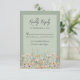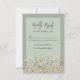 Complete your wedding stationery set with this refined RSVP reply card featuring soft, nature-inspired details. The design showcases a calming sage green tone with delicate wildflowers arranged along the edges, highlighting muted pink, yellow, lavender, and blue blooms paired with gentle green leaves for an elegant garden feel.