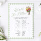 Perfect game for my daughters baby shower. The artwork on the game fit in perfectly with the shower “garden” theme !