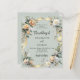 A sage green background. Decorated with white and yellow florals and a golden ribbon. Personalize and add your names and details.