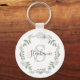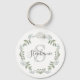 This design features a wreath of watercolor foliage in shades of sage green and gray. Personalize the text inside the wreath with a name in charcoal gray/off-black handwriting style calligraphy and a monogram initial in light gray open serif type. Makes a great bridal party gift!