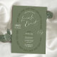Elegant business grand opening invitation design, featuring a minimal floral border, modern script fonts and a sage green background with space for your launch party details and logo. You can edit all colors to match your brand aesthetic. Use this greenery invite design for the grand opening of your beauty salon, boutique or small business.