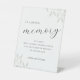 Honor those who are with you in spirit with this "In Loving Memory" pedestal sign. Featuring soft sage greenery and elegant typography, this sign provides a beautiful, respectful tribute for your memorial table.