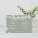 An elegant greenery floral string lights sage green wedding details information enclosure card personalized with your special details set in stylish typography and your names and wedding date on the reverse. Designed by Thisisnotme©