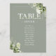 These elegant sage green wedding table numbers featuring greenery floral typography can be personalized with your guests' seating plan set in chic lettering. The cards are printed on the front and back (double-sided). Designed by Thisisnotme©