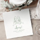 Unique hand drawn cheers champagne glasses toast design, with playful handwritten font in soft sage green, fun and elegant. Great napkins for casual garden engagement party, artistic boho beach wedding party, and modern whimsical bridal shower.