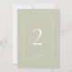 Chic and elegant. This simple sage green wedding table number features a white frame and text in a contemporary font. The design is repeated at the back.