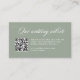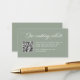 This elegant, sage green wedding website enclosure card features classic, old-world style white romantic calligraphy as well as a scannable QR code.