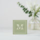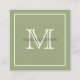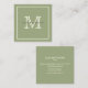 This classic yet simple square Business Card is featured in sage green and ivory Gray. Click Personalize this Template to easily add your own monogram and custom information.