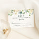 This wedding RSVP card features a watercolor ivory rose arrangement with sage greenery for a timeless garden feel. A clean layout keeps the reply process simple and readable for guests. Coordinates beautifully with matching floral wedding stationery. Personalize names line, reply-by date, and wording.