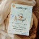 This adorable little aviator design brings soft sage skies, smiling sunshine, fluffy clouds, and twinkling stars together in the sweetest way. Perfect for a “time flies” first birthday theme, it’s a heartfelt card to thank friends and family for celebrating your little pilot’s big milestone.