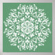 This white mandala sits on a gray-green background. The colors are natural and relaxing. Part of the Pras Mandala Collection.