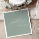 Modern "just love" script minimalist design in sage green and white, simple and elegant. Great for modern wedding and other events.