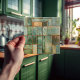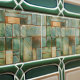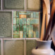 This exquisite ceramic tile array presents a stunning collage of glazed squares, each telling a story in shades of sage, seafoam, and eucalyptus green. Accents of amber gold and specks of sand beige offer a warm contrast, while the crackled texture provides a rustic, time-worn appeal. The rich cinnamon and espresso borders frame each tile, lending a grounded depth to the composition. A golden tile stands as a centerpiece, its metallic sheen reflecting light and drawing the eye. Perfect for those looking to infuse their space with a touch of organic elegance and artisanal charm, this tile is a testament to the beauty found in the imperfections of nature and the artistry of human craft.