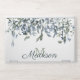 Elegant and practical laptop skin printed with an elegant collection of floral in sage and gray-silver hues and adorned with your name and initial.