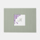 Cottage sage green stripe and floral secret garden pattern in purple with script font monogram, single initial doormat. Personalize with your own initial. Designed to match our Secret Garden Cottage Collection.