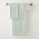 This sage bathroom towel set has a sage background but you can customize it with a different color to match your bathroom decor.