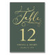 This table number card features whimsical flourish gold typography on a sage green background. You can add your details in the customize menu. This menu is part of a beautiful matching wedding suite that can be fully personalized.