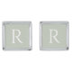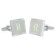 Sage White Monogram Square Wedding Groomsman Cufflinks