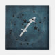 A constellation of black stars float over the astrological symbol of Sagittarius the archer, on a mysterious teal blue background and surrounded by a silver astro chart frame. An esoteric gift for someone born under the Fire sign of Sagittarius - November 22 to December 21.