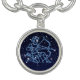 Bracelet charm featuring the zodiac symbol for Sagittarius in soft silver blue, overlaid with the stars of the constellation, against a starry sky background graded from deep midnight blue to black.