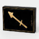 Stylized hammered gold Sagittarius astrology zodiac birthday symbol in a hand drawn gold double line frame. Sagittarius in a gold script font can be customized to add a personal touch.