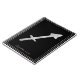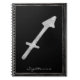 Stylized hammered silver Sagittarius astrology zodiac birthday symbol in a hand drawn silver fine double line frame. This notebook or dream journal or writing pad has Sagittarius text in a fine script, which can be personalized to narrate your own story.