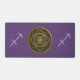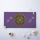 This mandala was designed for the zodiac sign, Sagittarius, depicting an amethyst stone in the center surrounded by elements representing the sign, such as the symbol for the sign, the constellation, and the alchemical symbol for Fire, as well as filigree vines and weaves wrapping it all into a solid image in shades of purple, gold, and black.