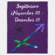 Elegant Script: Features "Sagittarius" and its birth dates in a beautiful, flowing white cursive that provides a high-contrast, sophisticated look.