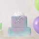 A mother of pearl Sagittarius zodiac symbol on a vibrant pastel baby blue and pink decor print background. A modern design for a great custom birthday gift idea for her.