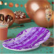 Broken tiles of wiggly stripes and Sagittarius zodiac symbols in shades of purple.