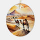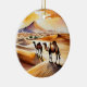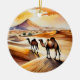 This ornament features a watercolor portrait of two camels walking through the Sahara desert.