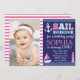 Plain white envelopes are included with paper invitations and will come to fit the invitation size you select. If you don’t need the envelopes, you may choose to not receive them by selecting the dropdown below "Envelopes" and choosing "None." If you’d like to have a design on your envelopes, you can browse all of these available envelopes to find the design that complements your Sail Away Girls Nautical Birthday Invitation.
