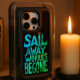A colorful typography design features the phrase Sail Away Worries Begone with the letters filled in with a swirling ocean-like pattern.