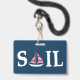 Sail text design illustration with sailing boat decoration on dark blue background. It is possible to change the background color and to add different one to the design with your choice.