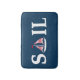 Sail text design illustration with sailing boat decoration on dark blue background. It is possible to change the background color and to add different one to the design with your choice.