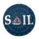Sail text design illustration with sailing boat decoration on dark blue background. It is possible to change the background color and to add different one to the design with your choice.