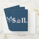 Sail text design illustration with sailing boat decoration on dark blue background. It is possible to change the background color and to add different one to the design with your choice.