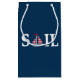 Sail text design illustration with sailing boat decoration on dark blue background. It is possible to change the background color and to add different one to the design with your choice.