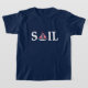 Sail text design illustration with sailing boat decoration on dark blue background. It is possible to change the background color and to add different one to the design with your choice.