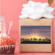 Behind the silhouettes of bare leafless winter tress a phantom ship sails through the clouds of a sunset sky.