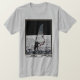 Looks like a b&w photo, but is actually a high contrast photo of a man on a sailboard backlit by bright sun. Sparkly silver water, black mountain, red trim on sail. Text on front: "Sailing" Back has smaller version of same picture. Looks good on any style of shirt......can be customized.